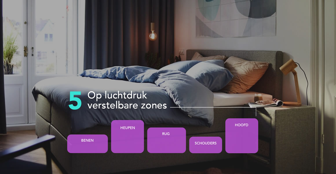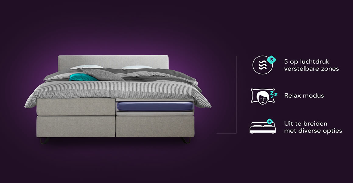 Een goed matras is de basis van goede nachtrust. Het smart-matras bevat 5 op luchtdruk verstelbare zones. Pas de hardheid aan op jouw slaapwensen en lichaamstype.